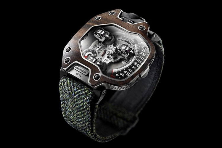 Der UR-110 Eastwood ist in einer Macassar-Ebenholz-Lünette verkleidet und verleiht ihm ein völlig neues Erscheinungsbild, das die Holzplatte mit den erstaunlich futuristischen Komplikationen des Zifferns kontrastiert. Zur Ergänzung der Holzblende ist jedes Uhrengehäuse mit Tweed-Bändern gepaart, wobei das exorbitante Design mit einer unerwarteten traditionellen Ästhetik injiziert wird. Ich hätte mich niemals vorstellen können, Hartholz und Tweed eine gute Ergänzung zu diesem Meisterwerk, aber es stellt sich heraus, sie sind. Im Ernst, diese neuen Ausgaben sehen noch besser aus als jede vorherige Iteration.